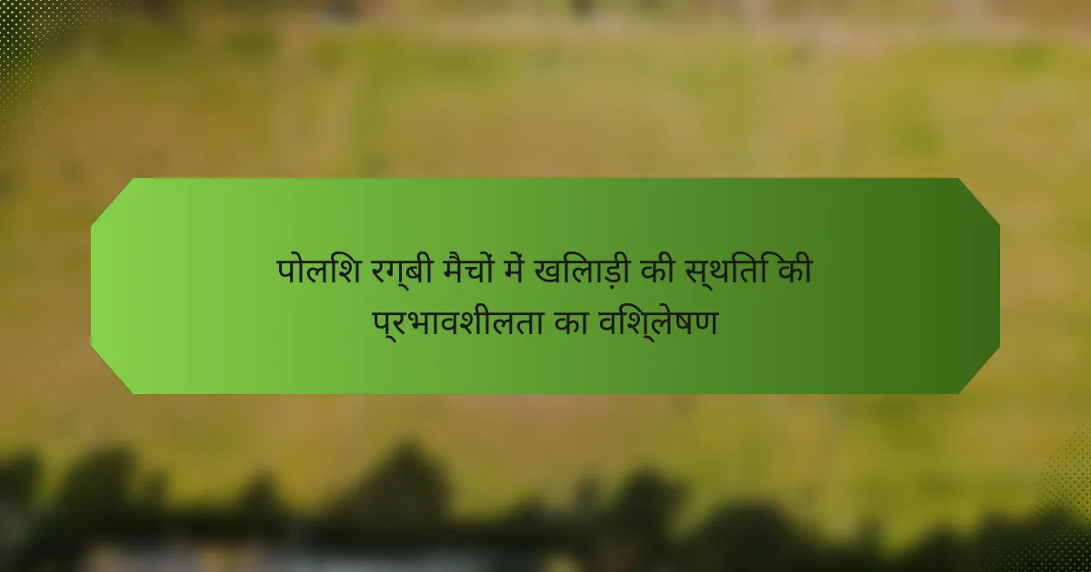 पोलिश रग्बी मैचों में खिलाड़ी की स्थिति की प्रभावशीलता का विश्लेषण करना यह समझने के लिए महत्वपूर्ण है कि व्यक्तिगत भूमिकाएँ टीम की सफलता में कैसे योगदान करती हैं। स्कोरिंग योगदान और रक्षा क्रियाओं जैसे विभिन्न प्रदर्शन मेट्रिक्स का मूल्यांकन करके, टीमें अपनी रणनीतियों को अनुकूलित कर सकती हैं और समग्र प्रदर्शन में सुधार कर सकती हैं। यह विश्लेषण न केवल प्रत्येक स्थिति के महत्व को उजागर करता है बल्कि कोचिंग निर्णयों और लाइनअप समायोजन को भी सूचित करता है।