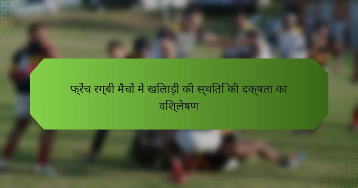 फ्रेंच रग्बी में खिलाड़ी की स्थिति की दक्षता यह समझने के लिए महत्वपूर्ण है कि व्यक्तिगत भूमिकाएँ मैदान पर टीम की सफलता में कैसे योगदान करती हैं। विभिन्न प्रदर्शन मैट्रिक्स का विश्लेषण करके, कोच और विश्लेषक ताकत और कमजोरियों की पहचान कर सकते हैं, जिससे रणनीतियों में सुधार और समग्र टीम प्रदर्शन में वृद्धि होती है।