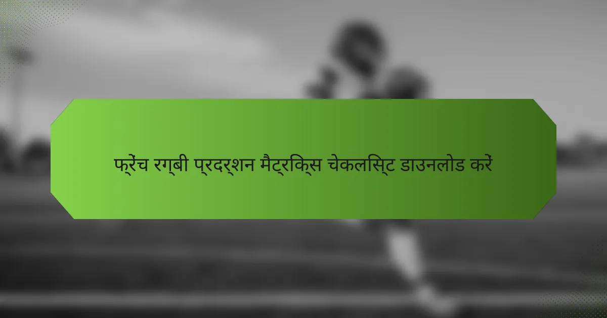 फ्रेंच रग्बी प्रदर्शन मैट्रिक्स चेकलिस्ट फ्रांस में रग्बी टीमों के प्रदर्शन का मूल्यांकन और सुधार करने के लिए एक आवश्यक उपकरण है। यह व्यापक चेकलिस्ट कई मैट्रिक्स प्रदान करती है जिनका उपयोग कोच और खिलाड़ी प्रशिक्षण और मैचों के दौरान ताकत और कमजोरियों की पहचान करने के लिए कर सकते हैं। आप चेकलिस्ट को आधिकारिक रग्बी संघ की वेबसाइट या एक निर्दिष्ट संसाधन पृष्ठ से आसानी से डाउनलोड कर सकते हैं, जो आपकी आवश्यकताओं के अनुसार विभिन्न प्रारूपों में उपलब्ध है।