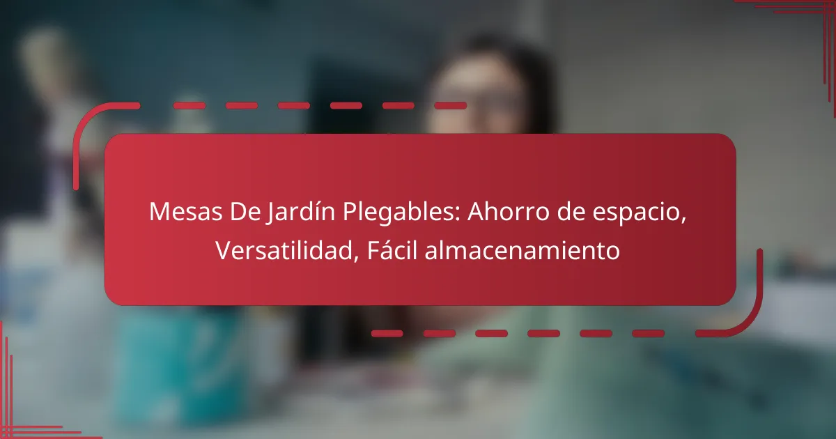 Las mesas de jardín plegables son muebles diseñados para facilitar su uso y almacenamiento, permitiendo ahorrar espacio cuando no están en uso. Sus beneficios incluyen versatilidad en diferentes entornos y la posibilidad de guardarlas fácilmente, lo que las convierte en una opción popular para patios y jardines.