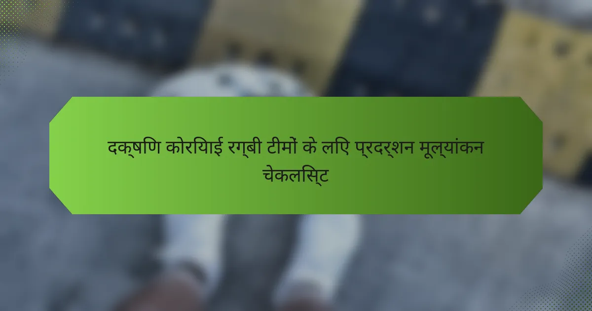 दक्षिण कोरियाई रग्बी टीमों के प्रदर्शन मूल्यांकन चेकलिस्ट को मैदान पर व्यक्तिगत और टीम की प्रभावशीलता का आकलन करने के लिए एक संरचित दृष्टिकोण प्रदान करने के लिए डिज़ाइन किया गया है। प्रमुख प्रदर्शन संकेतकों (KPIs) पर ध्यान केंद्रित करके, कोच खिलाड़ियों के कौशल, फिटनेस स्तर और समग्र टीम गतिशीलता के बारे में मूल्यवान अंतर्दृष्टि प्राप्त कर सकते हैं, जो अंततः प्रदर्शन में सुधार को बढ़ावा देता है। उन्नत उपकरणों और तकनीकों का उपयोग इस मूल्यांकन प्रक्रिया को और बढ़ाता है, ताकी ताकतों और विकास के क्षेत्रों की समग्र समझ सुनिश्चित हो सके।