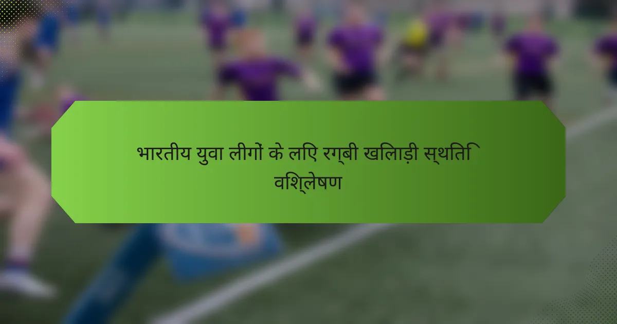 युवाओं के रग्बी लीग में, खिलाड़ियों की स्थिति को समझना कौशल और रणनीतियों के विकास के लिए महत्वपूर्ण है। फॉरवर्ड और बैक प्रत्येक की अद्वितीय भूमिकाएँ होती हैं जो टीम की सफलता में योगदान करती हैं, और विश्लेषणात्मक डेटा इन गतिशीलताओं के बारे में मूल्यवान अंतर्दृष्टि प्रदान करके प्रदर्शन को बढ़ा सकता है। डेटा-संचालित उपकरणों का उपयोग करके, कोच ताकत और कमजोरियों की पहचान कर सकते हैं, जिससे लक्षित प्रशिक्षण संभव होता है जो व्यक्तिगत विकास और समग्र टीम सुधार को बढ़ावा देता है।