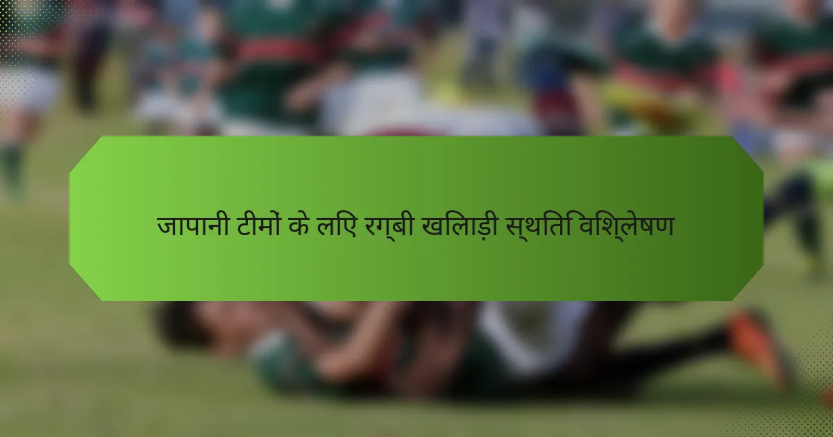 जापानी रग्बी में, खिलाड़ियों की स्थिति, जिसमें फॉरवर्ड और बैक शामिल हैं, टीम की गतिशीलता और मैच प्रदर्शन का विश्लेषण करने के लिए महत्वपूर्ण है। खिलाड़ियों के विश्लेषण का लाभ उठाकर, टीमें गति, फिटनेस और खेल सांख्यिकी जैसे मेट्रिक्स के बारे में मूल्यवान अंतर्दृष्टि प्राप्त कर सकती हैं, जो अंततः प्रशिक्षण, रणनीति और खिलाड़ी चयन को बढ़ाती हैं।