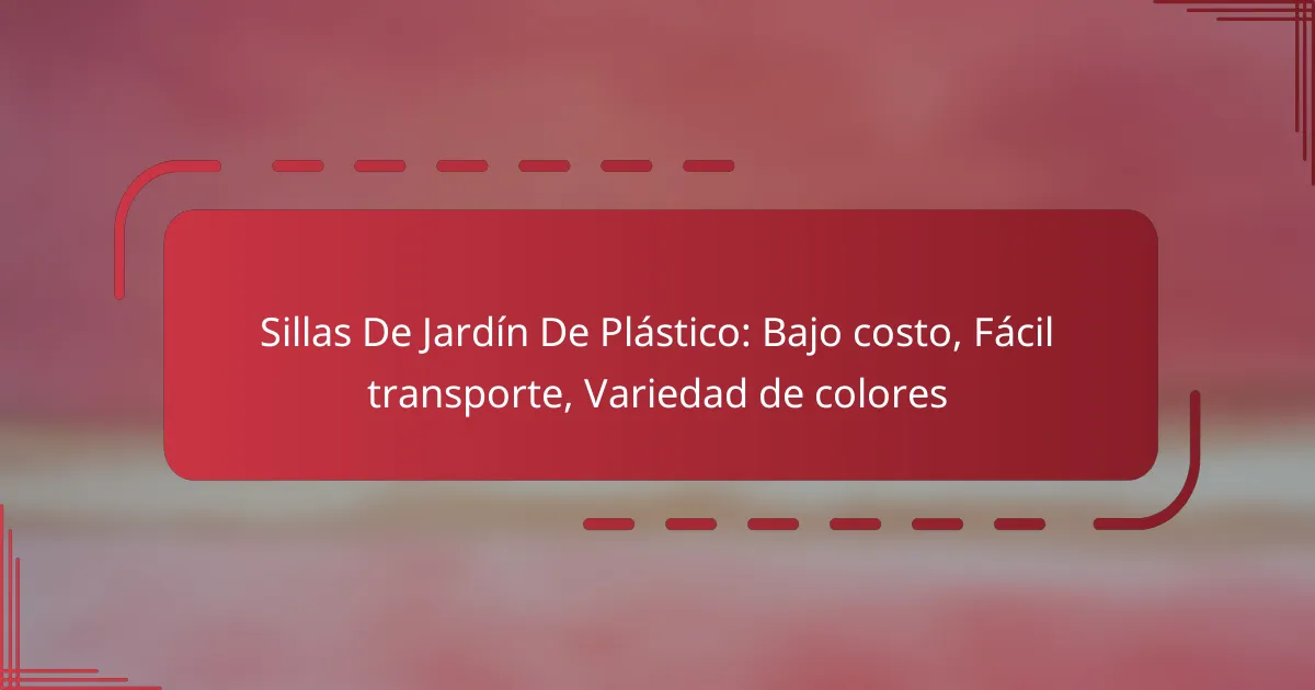Las sillas de jardín de plástico son una opción ideal para quienes buscan mobiliario exterior asequible y funcional. Su bajo costo, facilidad de transporte y variedad de colores las hacen perfectas para cualquier espacio al aire libre. Al elegir la silla adecuada, considera su uso, dimensiones y estilo para asegurar que se adapte a tus necesidades.