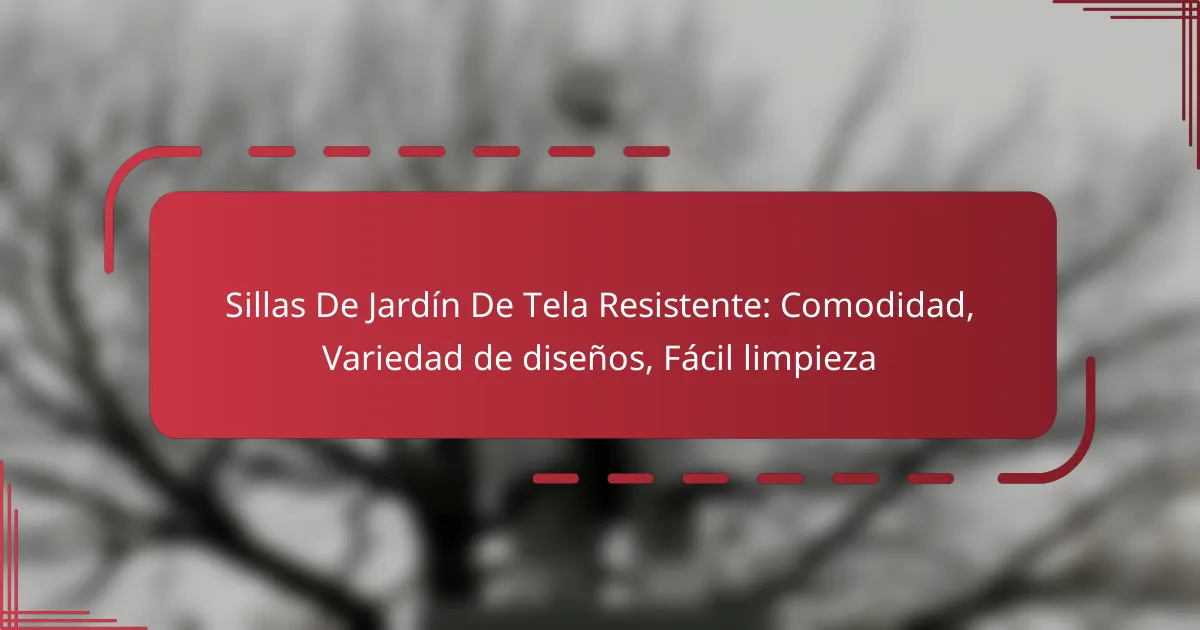 La limpieza de sillas de jardín de tela resistente es esencial para mantener su apariencia y durabilidad. Considera el tipo de material, la frecuencia de limpieza y las técnicas adecuadas para eliminar manchas, lo que te ayudará a prolongar la vida útil de tus muebles de exterior.